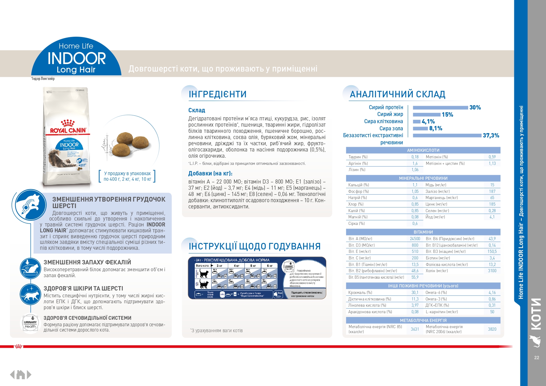 Сбалансированное содержание питательных веществ для оптимального пищеварения (белки L.I.P.), сочетание неферментируемой клетчатки и свекольного жома, для поддержания баланса кишечной микрофлоры, способствуют снижению количества непереваренных остатков пищи в кишечнике и снижению запаха фекальных масс у кошек.
