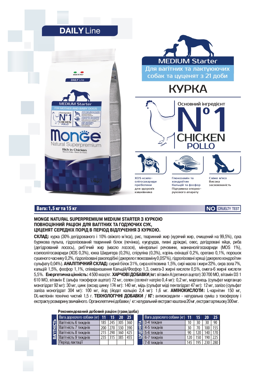 Состав Monge Medium Starter For Mother & Baby Dogs